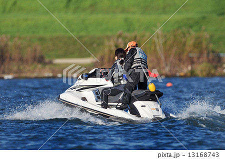 水しぶきを上げ走る水上バイク ジェットスキー マリンレジャー