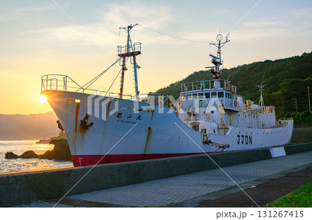 【道の駅・マリンドリーム能生】朝日を浴びる越山丸【糸魚川市】