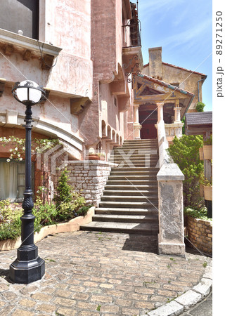 晴天の和歌山マリーシティ内にあるテーマパークポルトヨーロッパの街並み