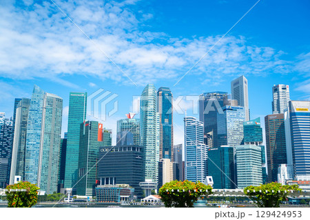 シンガポール・マリーナベイの高層ビル群とスカイライン