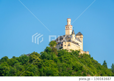 Marksburg Castle on Sunny Summer Day. Braubach, Rhineland-Palatinate, Germany