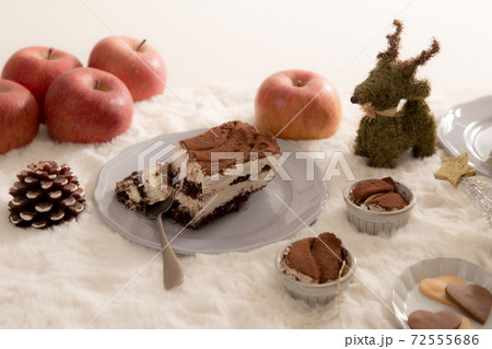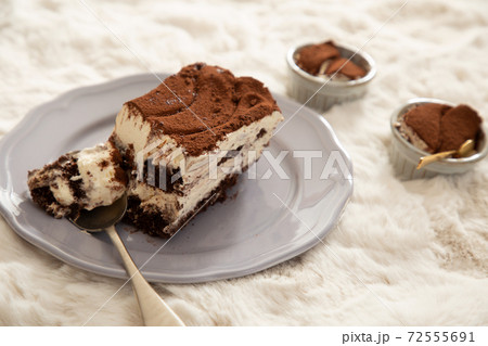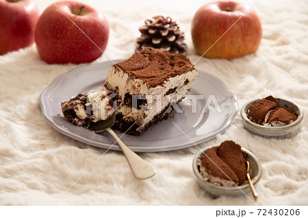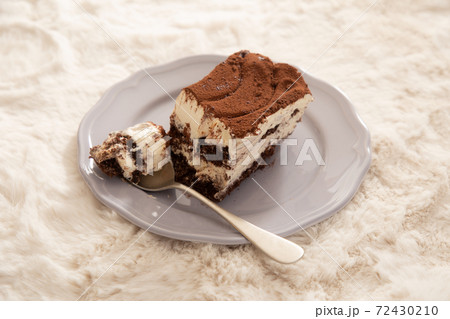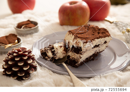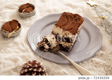 お皿に切り分けたティラミス 冬とスイーツのイメージ