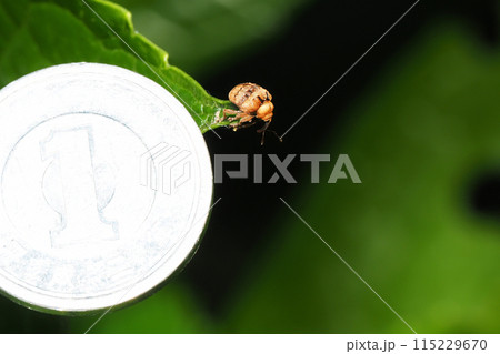 オオミスジマルゾウムシと一円硬貨