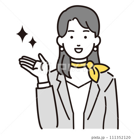 案内をするスカーフを首に巻いたスーツの女性イラスト