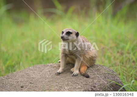 草の上でリラックスしたミーアキャット