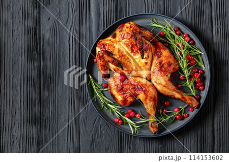 butterflied, spatchcock roast chicken on a plate