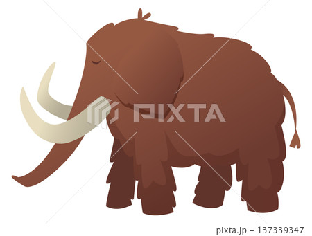 Brown mammoth. Animals before our era, paleontology, history, archeology and culture. Elephant with tusks. Vector illustration