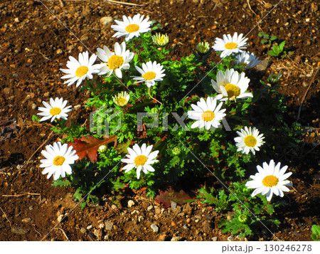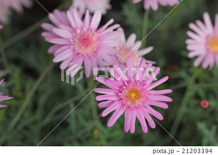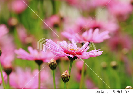 ピンク色のマーガレット(キューティーマイス)の花のある風景