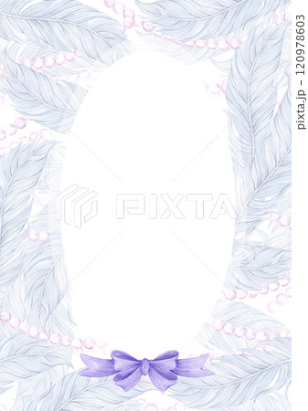 Carnival blue feathers with pearls and bow frame border. Hand drawn watercolor masquerade illustration isolated on white background. Can be used for postcard, invitation and other printed products.