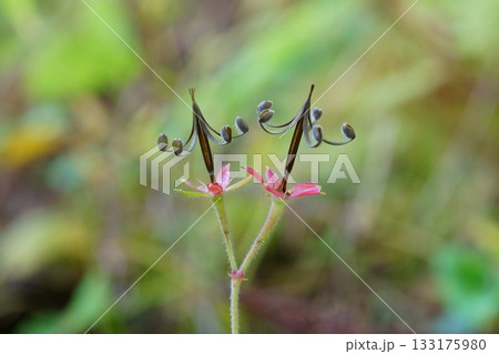 秋、足元に可愛くはじけた実が特徴的形なゲンノショウコ...2