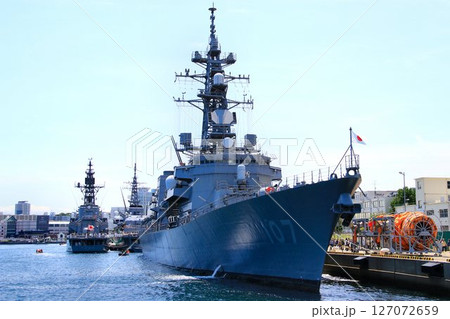 観艦式準備のため横須賀基地に停泊する護衛艦