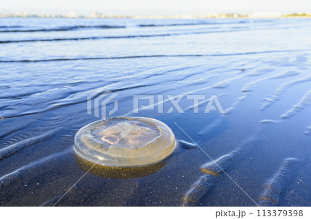 干潟に打ち上げられたミズクラゲ
