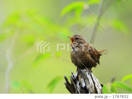 ミソサザイ 野鳥 ソングポストでさえずる 渓流の小鳥
