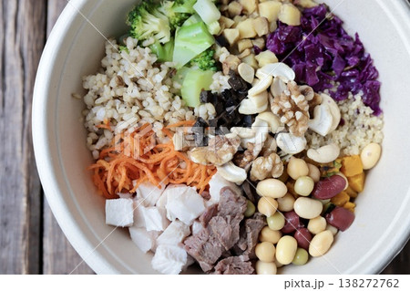 玄米入りのタンパク質たっぷりチョップドサラダ