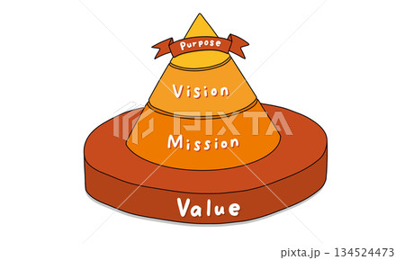 ミッション、ビジョン、バリューのアイコン(線画カラー)のイラスト