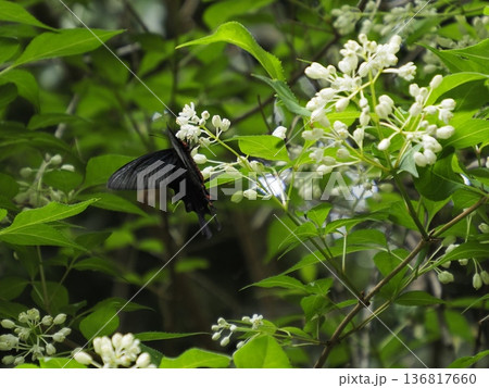 ミヤマカラスアゲハ雌 ミツバウツギで吸蜜