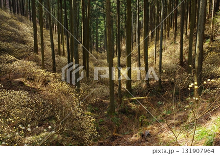 畑のミツマタと冬木立 【相模原市津久井 3月】