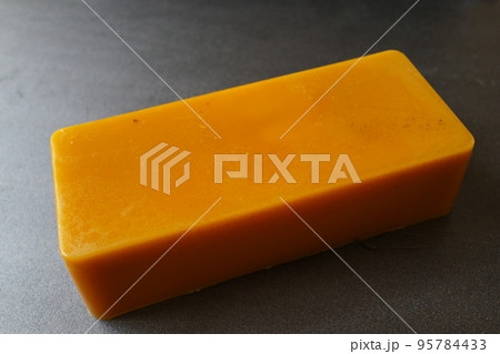 ミツロウブロックの生成 熱水より分離し半固形化したミツロウ
