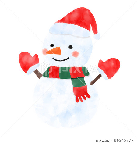 帽子と手袋とマフラーをつけている雪だるまの水彩イラスト
