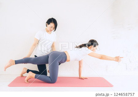 ピラティスの指導をする女性