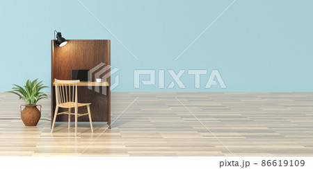 ノートPCが置かれた リモートワークスペース / 在宅勤務・ソロワークのコンセプトイメージ