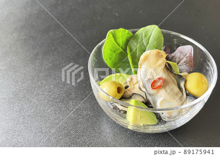 牡蠣とアボカドとオリーブのマリネ