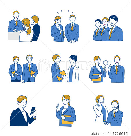 ビジネススーツを着た男性女性のシンプルな上半身セット