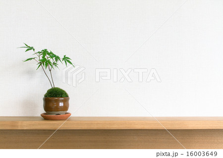 和の美を感じる盆栽のあるシンプルな室内庭園