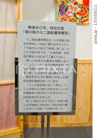 道の駅おがわまち ミニ風船爆弾模型 伝統工芸施設 紙漉き体験 小川和紙 展示
