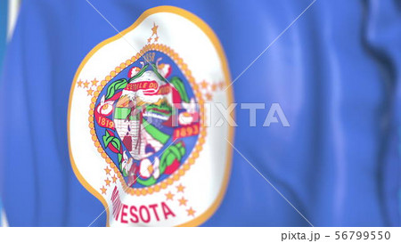 Flying flag of Minnesota. Close-up 3D rendering