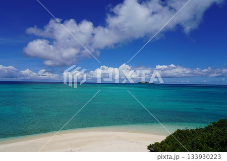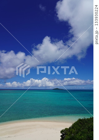 南国のビーチ:透き通る青い海と晴れ渡る空