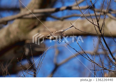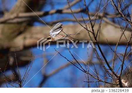 木から飛び立つミヤマホオジロ