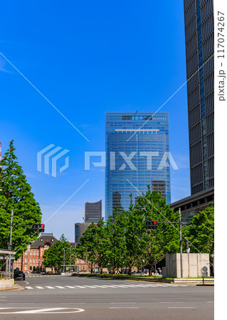 東京 千代田区 丸の内 日比谷通りから見た 東京駅と東京ミッドタウン八重洲