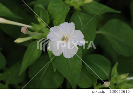 夏の庭に咲く白いオシロイバナ