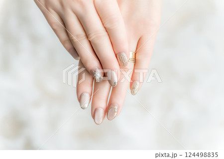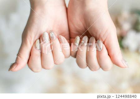 ネイルサロンでネイルをした手(マグネットジェル・ミラーライン)
