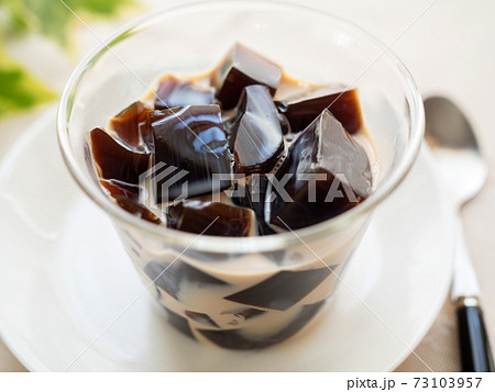 コーヒーミルクをかけた寒天で作ったコーヒーゼリー