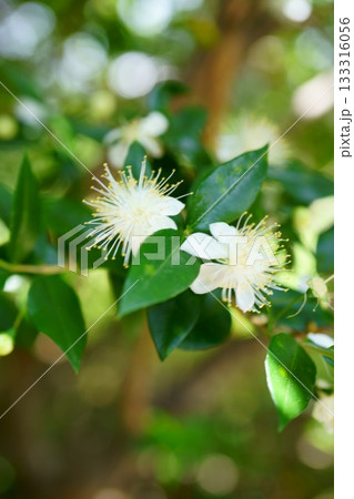 初夏の公園に咲くギンバイカの白い花