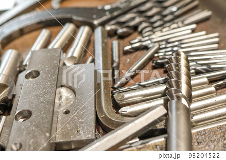 町工場の工具(ジグ、敷板、六角レンチ、エンドミル)