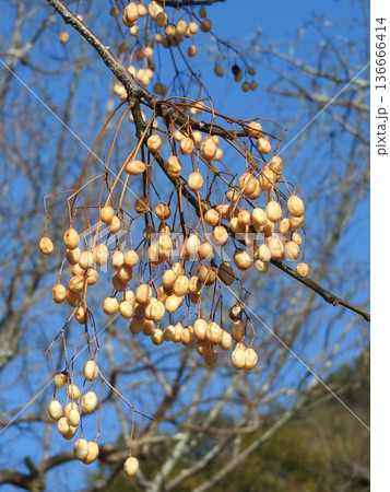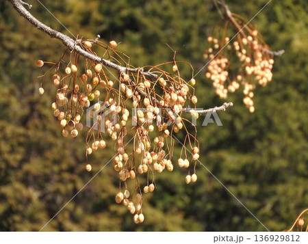 秋になり、丸い小さな実をたくさんつけた、センダン