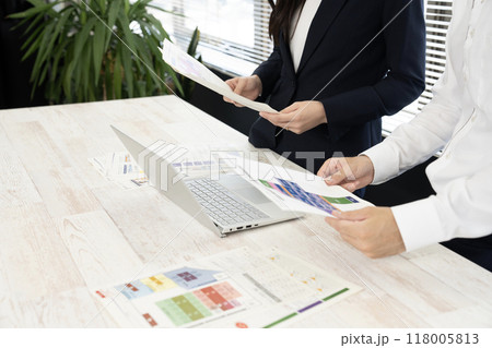 商業ビルについてミーティングをするビジネスパーソン