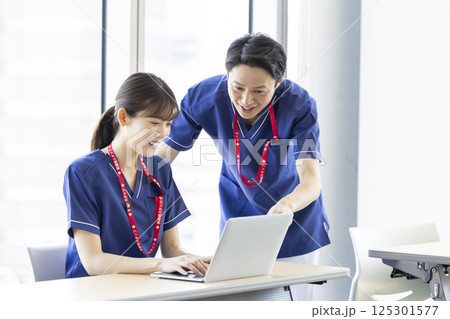 医療 会議室で打合せをする医療従事者 撮影協力:学校法人電波学園 東京電子専門学校