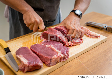Raw fillet beef meat for steaks on the home electric grill
