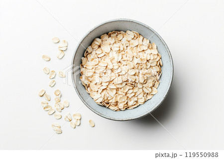 Oats in a grey ceramic bowl on a light background showcasing healthy whole grains ready for