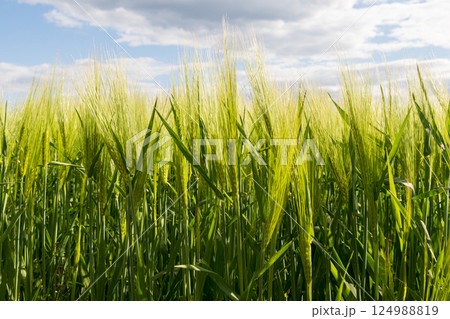 Green wheat growing in the fields. ?oncept of agriculture, ecology, gardening. Field of green grass.