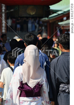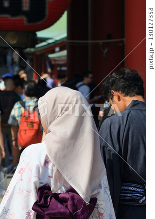 イスタンブールのモスク前のおしゃれなイスラム信徒
