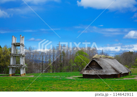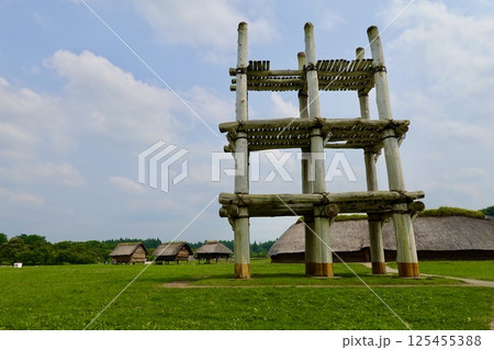 世界文化遺産三内丸山遺跡の掘立柱建物跡【エディトリアル使用限定】