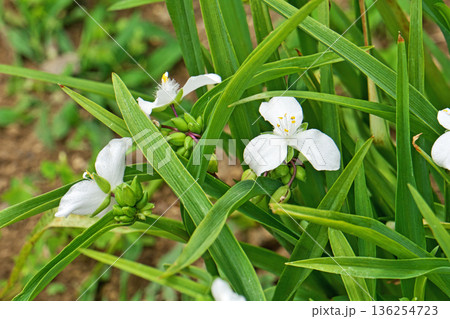 白いムラサキツユクサの花(春、五月)