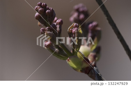 ピンク色のライラックの蕾と花(春、四月)