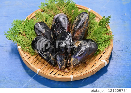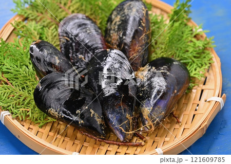 岩手県産のムール貝。二枚貝、貝類。