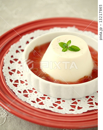 ミルクプリン 赤いフルーツソース添え(リネンクロスバージョン)